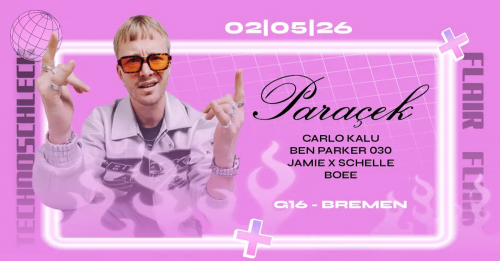 Mit Paracek kommt einer der aktuell angesagtesten Artists im Bereich Bouncy Hardtechno ins G16. Sein Sound: treibend, hypnotisch, kompromisslos. Keine Spielerei – nur Energie.